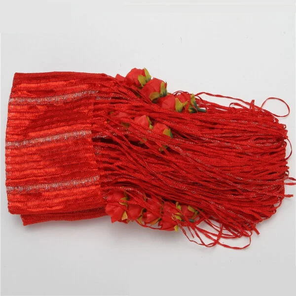 Red । Elegant Curtain with Rose Flower & Thread Shiny Tassel (20 Rose) – লাল রঙের পলিয়েস্টার লাইন কার্টেন উইন্ডো, দরজা, বিয়ে ও ইভেন্টের জন্য