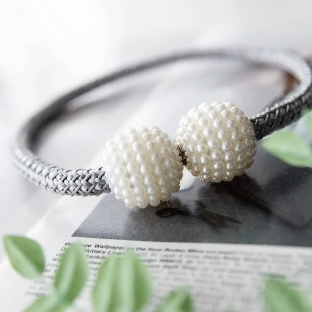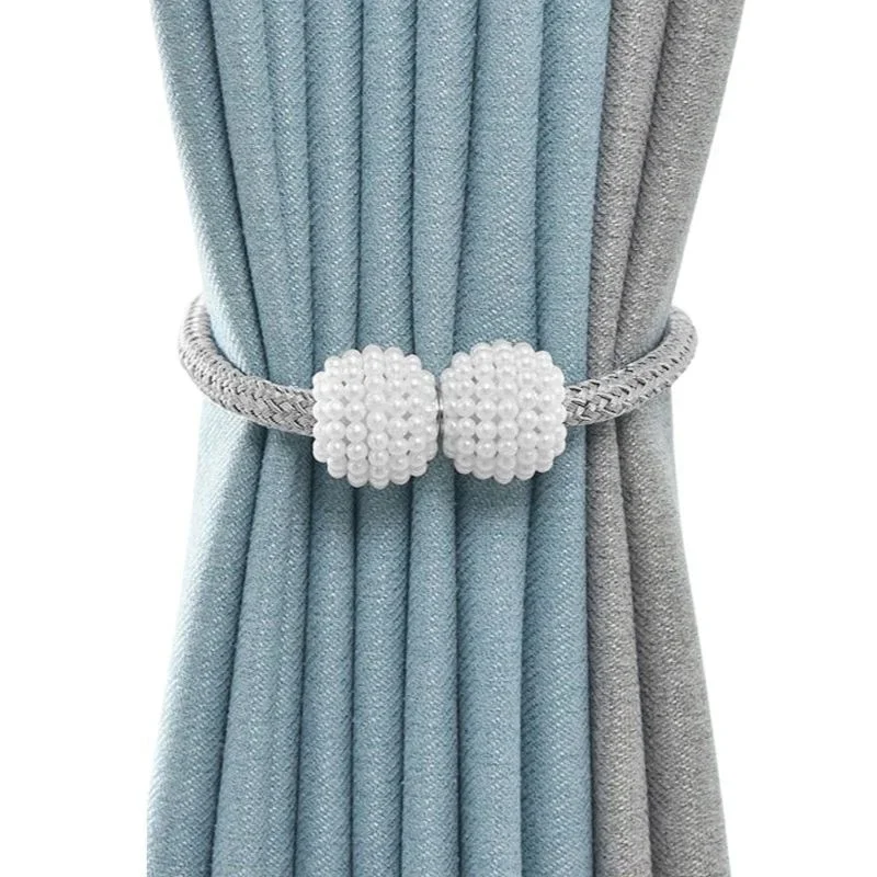 Silver । Magnetic Curtain Tieback with Big Pearl Ball (1 Pair) । CN-28